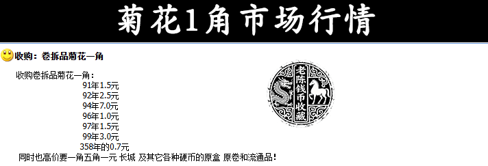 上头的报价中,包括了公缔造行的扫数年份的菊花1角,可以概述下来,规模在0.7-7元之间。