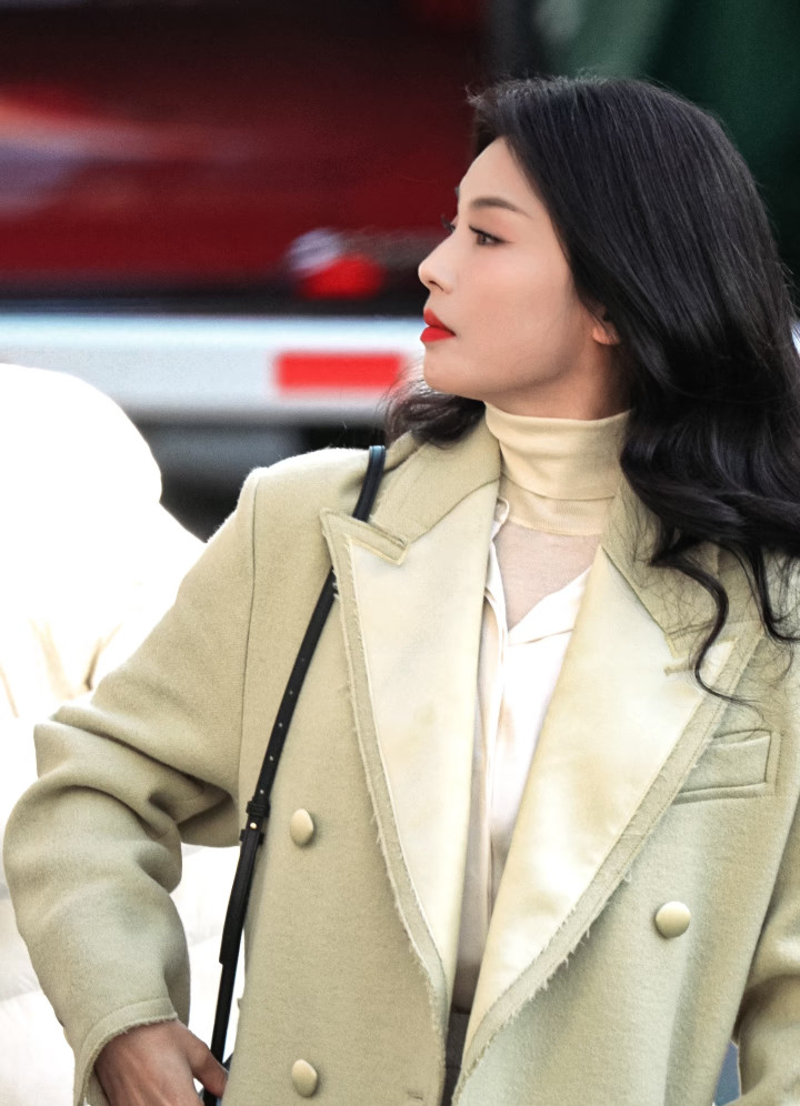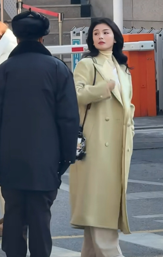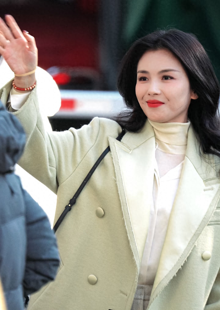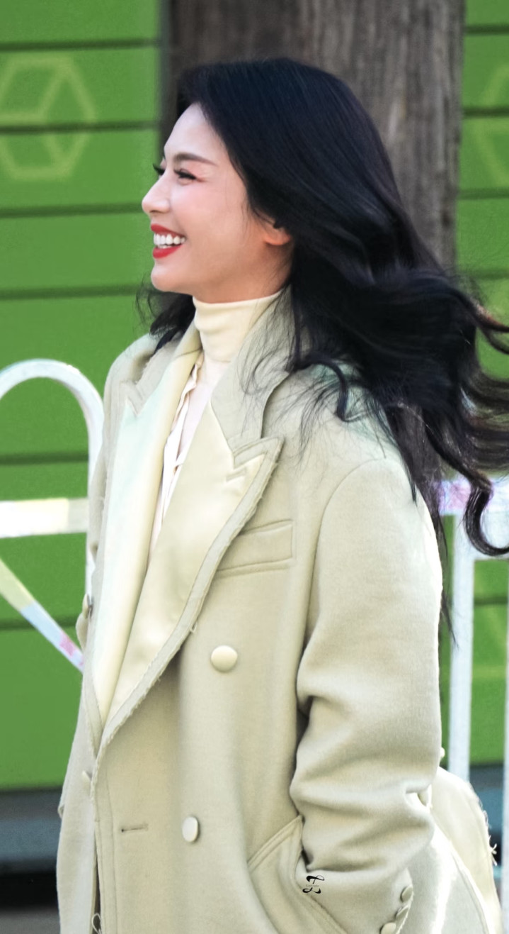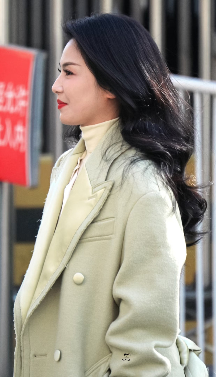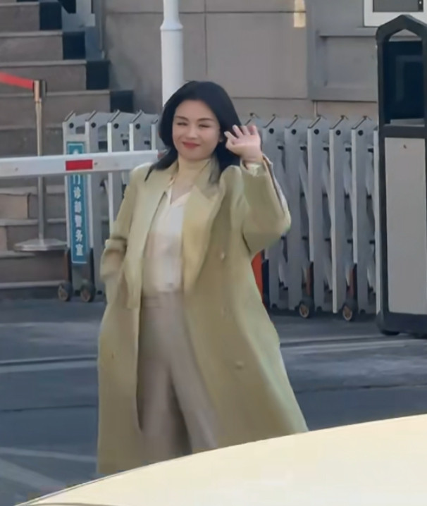 凤凰彩票官方网站 刘涛身穿浅绿大衣, 大波澜鬈发温文大气, 温婉优雅又显气质